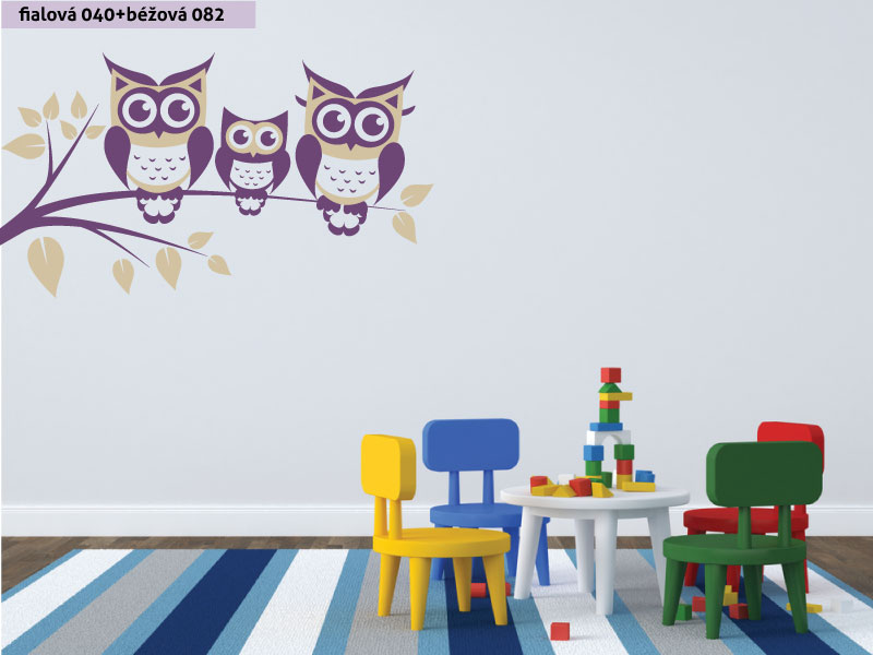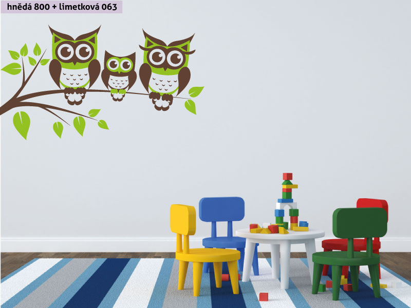 Samolepka na zeď Sovy na větvi